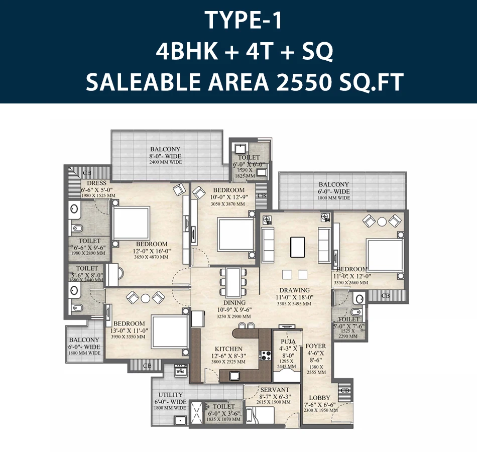 Irish Platinum in Sector 10, Greater Noida West offers intelligently designed floor plans for its spacious 3 BHK, 3 BHK + Study, and 4 BHK + Servant apartments. Each layout maximizes efficient use of space, ensuring generous living and dining areas, well-placed bedrooms with attached bathrooms, and balconies that let in plenty of natural light and breeze. The 3 BHK + Study option includes a dedicated work or reading area alongside the main bedrooms. With thoughtful design and optimal flow, every apartment delivers comfort, functionality, and a refined living experience.